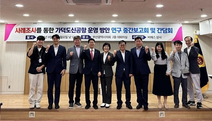 [부산 세계타임즈=이용우 기자] 부산광역시의회 의원연구단체 ‘가덕도신공항 추진 연구모임’은 26일 오후 12시, 부산광역시의회 의원회관 지하1층 회의실에서 ‘사례조사를 통한 가덕도신공항 운영방안’ 연구 용역에 대한 중간보고회와 간담회를 개최하였다.