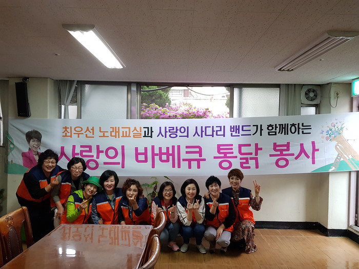 사랑의 사다리 밴드와 최우선 노래교실은 한 달에 1회씩 매월 셋째 주 화요일에 대전시 5개구 보육원에서 바비큐 통닭봉사를 꾸준히 하고 있다.