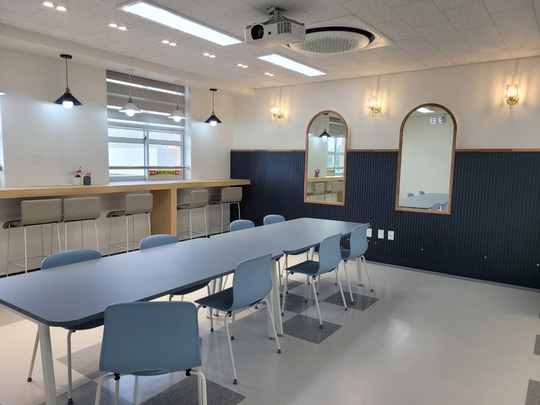 사업을 통해 체육실, 학생자치회실로 운영하던 곳은 미래교실로 명칭을 바꾸어 진로 설계 교육과 상시 운영이 가능한 상담 공간으로 재구성하였다. 영어전용교실은 가변형 칸막이를 설치하여 영어 수업은 물론 학생자치회, 학교운영위원회, 학부모회 등 학생 간, 교직원과 지역 주민 간 소통의 공간으로 탈바꿈하였다.