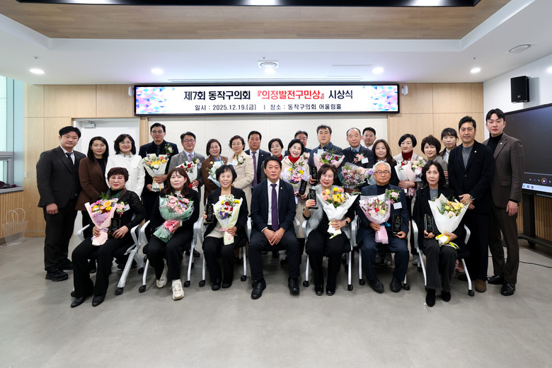 [동작구 세계타임즈=이장성 기자] 동작구의회(의장 정재천)는 12월 19일 의회 3층 어울림홀에서 ‘제7회 동작구의회 의정발전 구민상 시상식’을 개최하고, 지역사회 발전과 지방자치 구현에 기여해 온 구민과 단체의 공로를 기렸다.