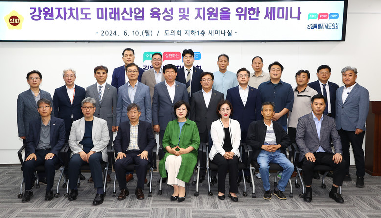 [강원도 세계타임즈=김민석 기자] 강원특별자치도의회 경제산업위원회(위원장 김기철)는 6월 10일(월)도의회 세미나실에서 ‘미래산업 글로벌 도시, 강원자치도 기업 육성 및 지원방향’이란 주제로 한 세미나를 개최했다.