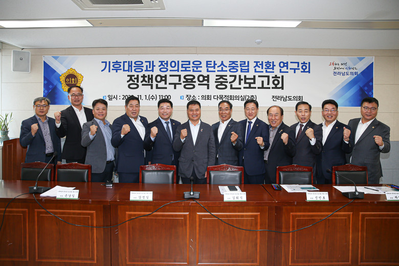 [전남 세계타임즈=우덕현 기자] 전남도의회 의원 연구단체 ‘기후대응과 정의로운 탄소중립 전환 연구회’(이하 연구회, 대표위원 주종섭)는 11월 1일 전남도의회 다목적회의실에서 ‘탄소중립 전환에 따른 일자리 감소 대응 방안 수립을 위한 정책 연구’에 대한 정책연구용역 간담회를 개최했다.