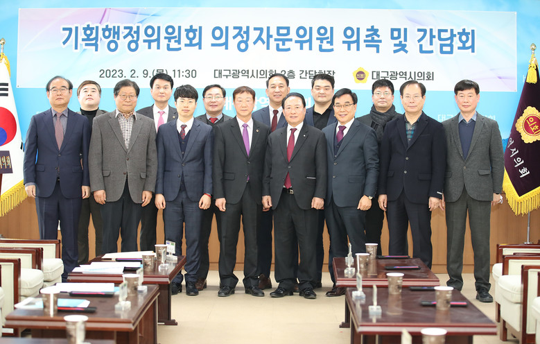 [대구 세계타임즈=한성국 기자] 대구시의회 기획행정위원회(위원장 임인환)는 2월 9일(목) 새롭게 위촉된 소관 의정자문위원과의 첫 번째 간담회에서 2023년 주요현안 및 의정활동에 대해 정책 자문했다.