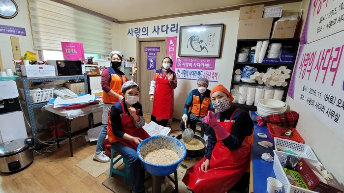 이날 봉사에는 유희자 단장을 비롯한 자원봉사자 5명은 오전10시~오후2시까지 4시간 동안 닭강정을 즉석에서 만든 후 대덕구 오정동 열매주간보호센터(20개), 서구 탄방동 대전발달장애인부모협회(15개), 유성구 용계동 성세시온의집(30개), 성세재활자립원(30개)에 전달을 하였다.