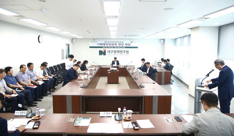 [대구 세계타임즈=한성국 기자] 대구시의회 기획행정위원회(위원장 임인환)는 제302회 임시회 기간인 7월 21일(금), 동구 신천동(동대구로 461)에 위치한 대구정책연구원을 방문해 운영 현황 등을 살펴보고 지역 실정에 맞는 정책개발 방안 등을 논의했다.
