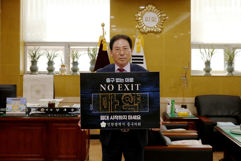 [중구 세계타임즈=심하린 기자] 강후공 인천광역시 중구의회 의장은 19일 마약 범죄 예방을 위한 ‘NO EXIT’ 캠페인에 참여했다.