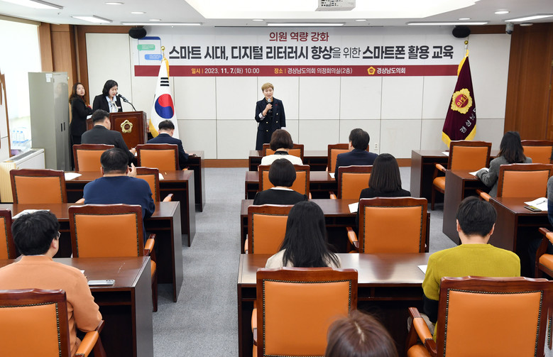 [경남 세계타임즈=최성룡 기자] 경상남도의회(의장 김진부)는 시대에 맞는 의원 역량강화를 위해 11월 7일(화) 경남도의회 의정회의실에서 스마트 시대, 디지털 리터러시 향상을 위한 스마트폰 할용 자체교육을 실시했다.