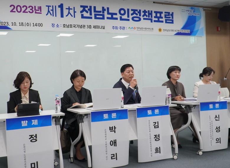 전라남도의회 보건복지환경위원회(위원장 최선국)와 전라남도사회서비스원(원장 강성휘)이 공동으로 주최한 이날 포럼은 초고령사회 대응 관련 기조강연과 주제발표, 지정토론 순으로 진행됐다.