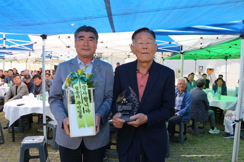 감사패에는 최명수 의원의 적극적인 역할로 주민들의 오랜 숙원사업이었던 송정지구 간이양수장 연결이 지난해 12월 준공되는 등 청송리 지역 물 문제 해결 노력에 대한 감사의 의미가 담겨있다.
