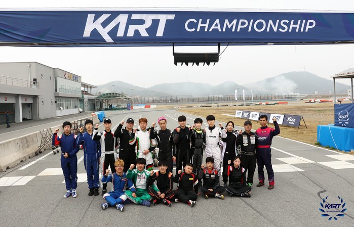 [사진설명] 2019 카트 챔피언십 개막전에 참가한 선수들이 영암 국제 카트 경기장에서 함께 기념사진을 찍고 있다.