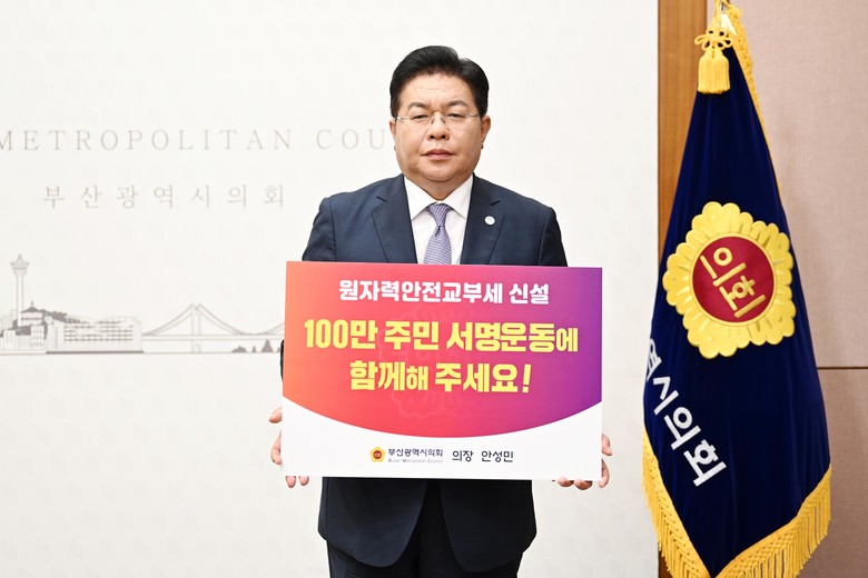 [부산 세계타임즈=이용우 기자] 부산광역시의회 안성민 의장은 29일 원자력안전교부세 신설을 위한 100만 주민 서명운동 SNS 챌린지에 동참하였다.