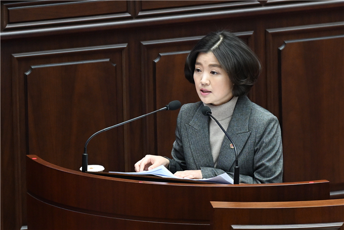 | ▲ 김효정 부산시의원(국민의힘/덕천ㆍ만적)이 시정질문을 진행하고 있다.(촬영:부산시의회) |