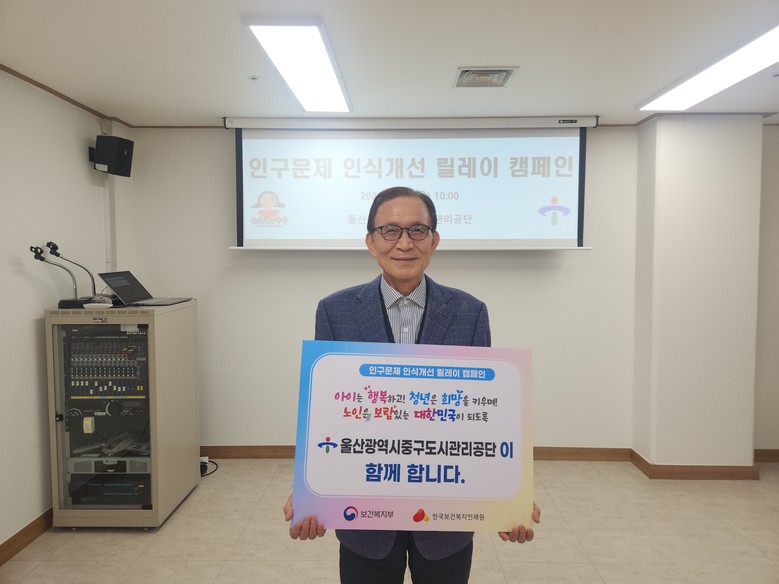 [중구 세계타임즈=이호근 기자] 울산중구도시관리공단(이사장 이광학)이 ‘인구문제 인식개선 이어가기 홍보(릴레이 캠페인)’에 동참했다.