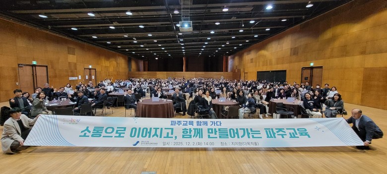 [파주시 세계타임즈=송민수 기자] 경기도파주교육지원청(전선아 교육장)은 12월 2일(화) 지지향(다목적홀)에서 파주지역 교육 주체들이 한 자리에 모여 2025 파주교육 정책 방향을 공유하고, 교육공동체 간 소통을 강화하는‘파주교육 함께 가다, 교육공동체 정책 소통.나눔’ 행사를 개최하였다.