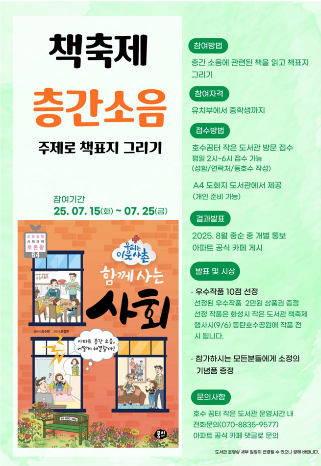 | ▲ '동탄 더 레이크 팰리스’가 운영 책축제 층간소음 주제로 책표지 그리기 프로그램 안내문 |