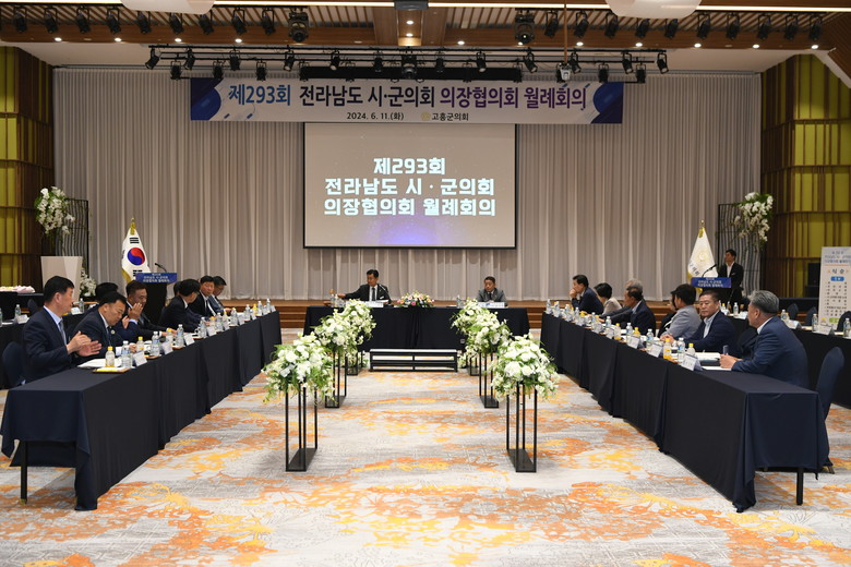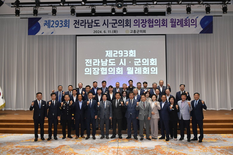 고흥군의회 주관으로 열린 제293회 월례회의는 이재학 고흥군의회 의장을 비롯한 전남 시·군의회 의장, 공영민 고흥군수, 송형곤, 박선준 도의원, 고흥군의회 의원, 기관장 및 지역 언론인 등 140명이 참석한 가운데 진행됐다.