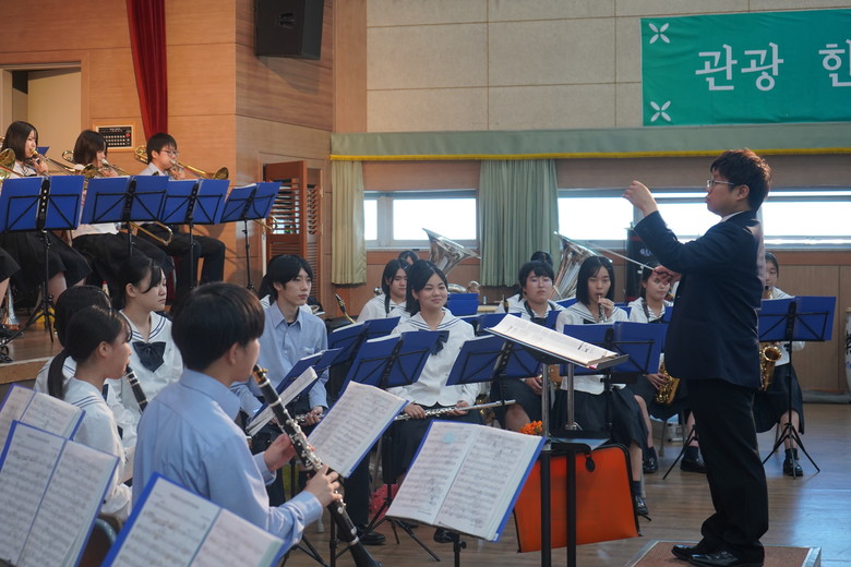 [부산 세계타임즈=이용우 기자] 부산 서구 부산관광고등학교(교장 황호근)는 지난 4일 일본 후쿠오카시 이이즈카고등학교 관현악부 학생 39명과 교직원 5명 등 총 44명이 부산관광고를 방문해 국제 문화교류 행사를 가졌다고 5일 밝혔다.