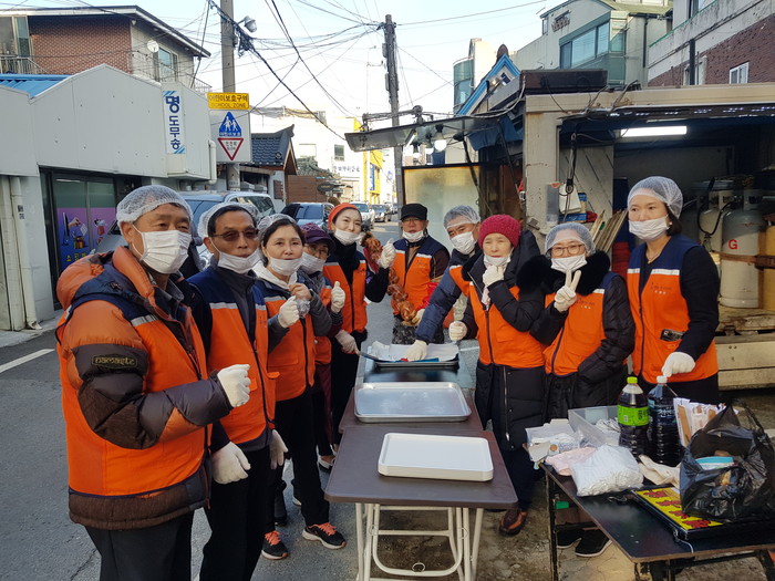이날 통닭봉사에는 추운날씨에도 신상일 단장을 비롯해서 회원15명이 2층~6층에 계시는 요양원 어르신들에게 바비큐 통닭을 전달 하였다.