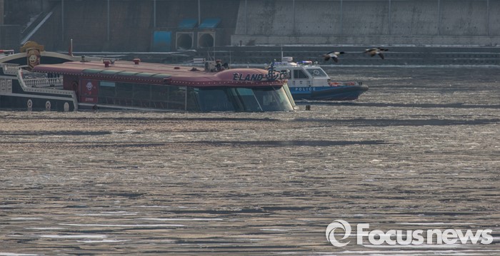 | △ 침몰 진행하고 있는 한강 유람선 |