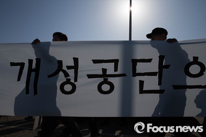 (파주=포커스뉴스) 16일 오후 경기도 파주시 통일대교에서 개성공단 입주기업, 영업기업, 협력기업 등 대표를 비롯한 임직원과 가족들이 공단재가동 및 실질보상을 촉구하며 '개성공단 평화대행진'을 하고 있다.