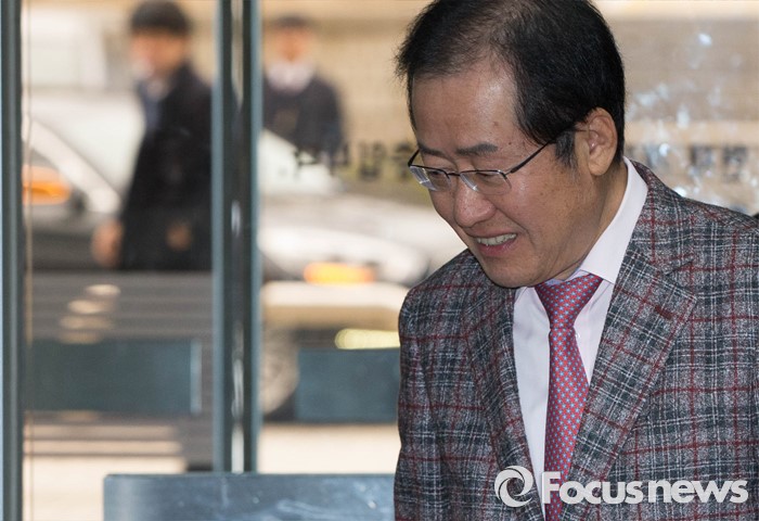 (서울=포커스뉴스) 18일 오전 서울 서초구 서울중앙지방법원에서 고(故) 성완종 전 경남기업 회장으로부터 불법 정치자금을 받은 혐의로 기소된 홍준표(62) 경남도지사가 4차 공판에 출석하고 있다.