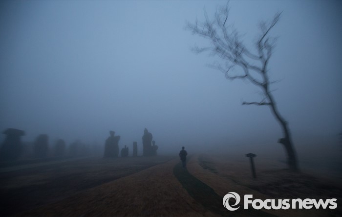(제주=포커스뉴스) 18일 오후 제주시 남조로 돌문화공원에서 보는 돌과 안개