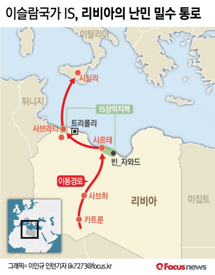 (서울=포커스뉴스) 28일(현지시간) 영국 일간지 더타임스에 따르면 이슬람국가(IS)가 짭짤한 수익을 보장하는 사람 밀수 통로를 장악했으며 난민 청년에게 거액의 보수를 제시해 IS에 가담시키고 있다고 리비아 관리들을 인용해 보도했다.