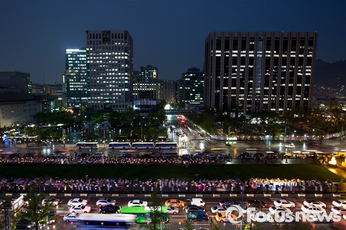 | △ 연등 들고 광화문 광장 도는 불자들 |