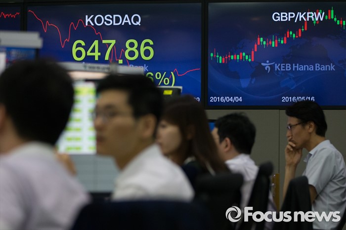 (서울=포커스뉴스) 영국의 유럽연합(EU) 탈퇴를 의미하는 '브렉시트'가 확정된 가운데 24일 오후 서울 중구 KEB 하나은행 명동 본점 딜링룸에서 딜러들이 업무를 보고 있다. 이날 코스피는 전날 대비 61.47p(3.09%) 내린 1,925.24, 코스닥은 32.36p(4.76%) 내린 647.16, 환율은 29.7원 오른 1,179.9원을 기록하며 장을 마감했다.
