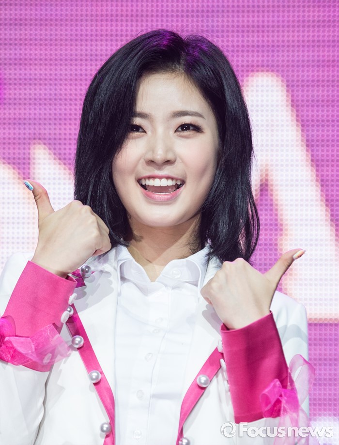 (서울=포커스뉴스) 29일 오전 서울 마포구 예스24 무브홀에서 열린 걸그룹 소나무의 미니앨범 '넘나 좋은 것' 쇼케이스에 참여한 멤버 디애나가 포토타임을 갖고 있다.