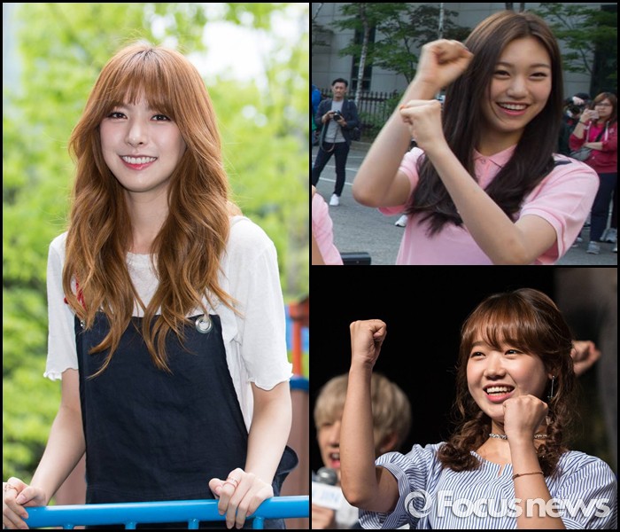 한편 앨리스는 현재 본명 송주희로 첫 뮤지컬에 도전 중이다. 엘비스 프레슬리의 명곡들로 채워진 주크박스 뮤지컬 ‘올슉업’에서 지적 매력이 넘치는 박물관 큐레이터 산드라로 열연을 펼치고 있다.걸그룹 헬로비너스 멤버 앨리스(송주희)가 소속사 후배인 아이오아이(I.O.I)멤버 최유정과 김도연을 칭찬했다. 사진은 앨리스(좌), 김도연(우상), 최유정(우하) <사진출처=포커스뉴스 DB>
