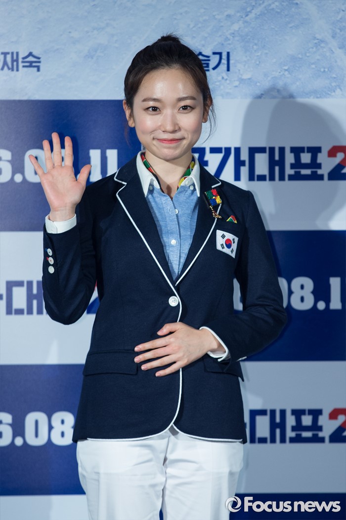 (서울-포커스뉴스) 6일 오전 서울 중구 동대문 메가박스에서 열린 영화 '국가대표2' 제작보고회에 참석한 배우 김슬기가 포토타임을 갖고 있다.