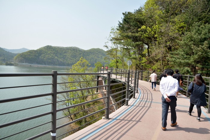 이번 사업설명회에서는 코리아 둘레길의 사업 취지를 공유하고 앞으로 진행될 노선 설정의 원칙과 기준, 지자체의 역할 등이 제시된다. 아울러 △걷기여행길과 지역관광 연계 사례 △전라도의 '정도 1000년 가로수길' 관광 자원화 사례 △평화누리길 게스트하우스 추진 현황 △해파랑길을 통해 본 코리아 둘레길의 미래 등 앞으로 조성될 코리아 둘레길의 바람직한 방향을 모색해 볼 수 있는 사례 발표 등이 이어진다.강원도 의암호 둘레길. 둘레길을 걷는 데는 왕복 30분 정도가 걸린다. 무리하지 않는 산책이라 건강에도 좋다. 이정환 기자