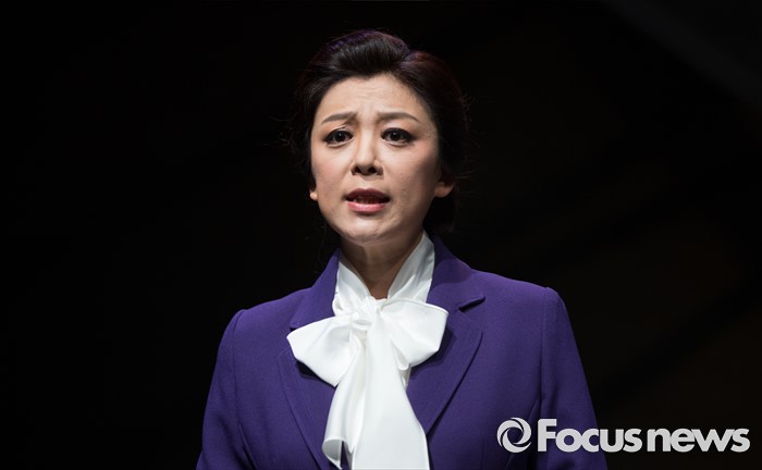 (서울=포커스뉴스) 14일 오후 서울 종로구 동숭아트센터 소극장에서 열린 연극 '코펜하겐' 프레스콜에 참여한 배우 이영숙이 주요장면을 시연하고 있다.