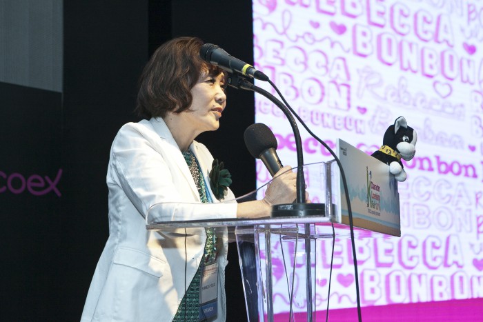 '헬로키티' 창작자 시미즈 유코가 14일 오후 서울 강남구 코엑스에서 열린 '서울 캐릭터·라이선싱 페어' 특별 강연자로서 나섰다. 그는 '캐릭터 창조비법'이라는 주제로 '심플함'을 강조하며 "40년 전에 만든 '헬로키티'가 이렇게 인기를 끌지 몰랐다"고 소감을 밝혔다.