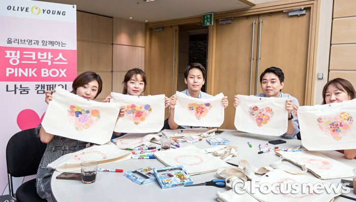올리브영 핑크박스 나눔 캠페인은 저소득층 여성 청소년에게 연간 생리대 20만 패드와 임직원이 직접 만든 DIY 면 생리대를 에코백에 넣어 무상 지원하는 활동이다. 이 캠페인은 앞으로 2개월마다 정기적으로 벌일 계획이다.