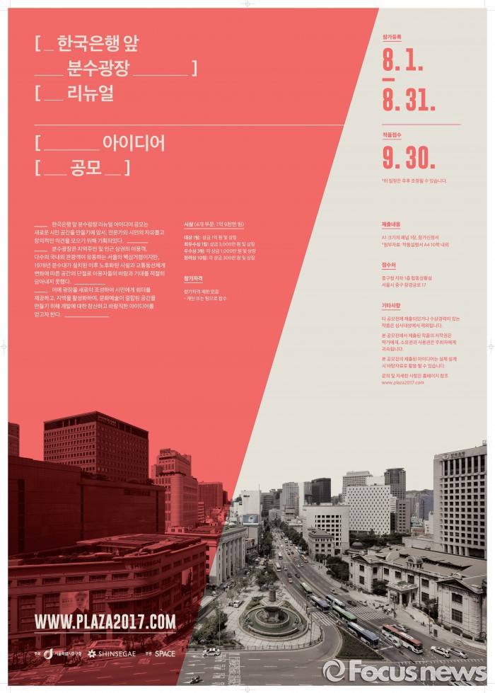신세계는 서울 중구와 함께 한국은행 앞 분수광장 개선 프로젝트 공모전을 열고, 해당 공간을 서울시민을 비롯해 해외 관광객들을 위한 대한민국 대표 공간으로 탈바꿈시킨다고 25일 밝혔다.