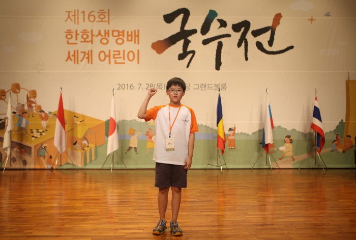 (서울=포커스뉴스) 한화생명은 28일 서울 여의도 63빌딩 그랜드볼룸에서 개최한 '제16회 한화생명배 세계어린이 국수전' 결선에서 한우진 군(사진)이 국수부 우승을 차지했다고 29일 밝혔다.
