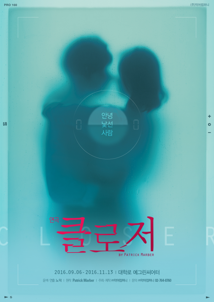 공개된 포스터는 청록색 모노톤의 배경에 두 남녀가 껴안고 있는 실루엣을 살려 감성적이고 애틋한 사랑의 느낌을 전달한다. 카메라 뷰파인더 안으로 보이는 두 남녀는 초점이 맞지 않는 듯한 흐릿함으로 불확실하고 위태로운 관계를 보여주는 듯 하다. '클로저'의 대표적인 대사인 "안녕 낯선 사람"을 카피로 사용해 작품의 상징적인 의미를 더했으며 포스터 전체적으로 몽환적이며 감성적 느낌을 담아 작품의 궁금증을 자아낸다.