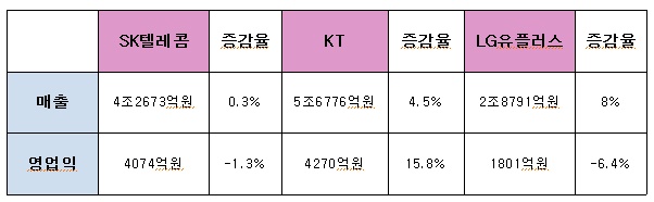1일 이동통신업계에 따르면 KT는 4년 만에 영업이익이 4000억원을 돌파하는 쾌거를 이뤘다. SK텔레콤은 자회사 투자비용 증가로, LG유플러스는 마케팅 비용 등의 증가로 역성장했다.