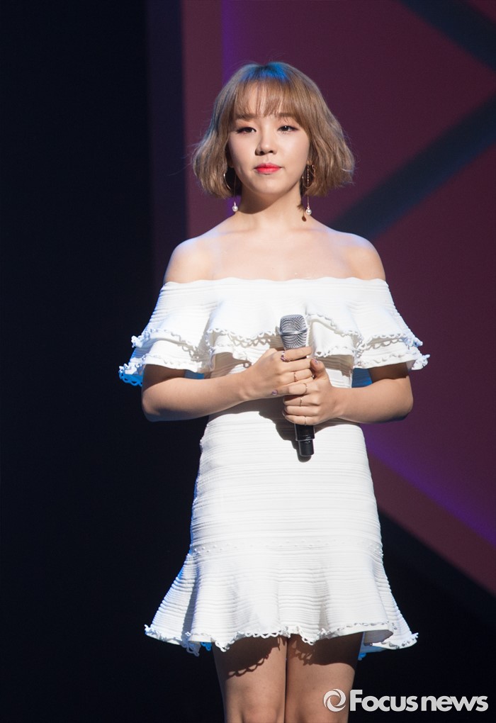 (서울=포커스뉴스) 8일 오후 서울 광진구 예스24 라이브홀에서 열린 준케이 솔로 미니앨범 쇼케이에 참석한 가수 백아연이 주변을 살펴보고 있다.