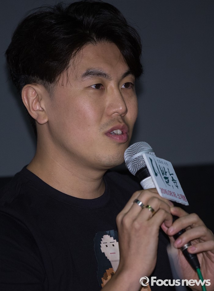 (서울=포커스뉴스) 9일 오후 서울 동작구 아트나인에서 열린 영화 '시발, 놈 : 인류의 시작' 언론시사회에 참석한 배우 손이용이 인사말을 하고 있다.