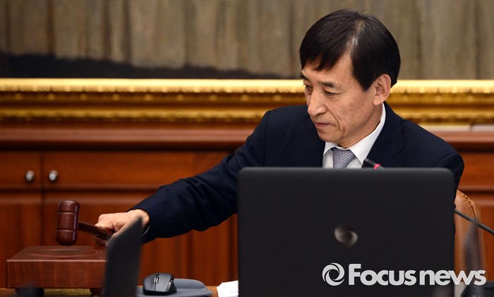 (서울=포커스뉴스) 11일 오전 서울 중구 한국은행에서 열린 제15차 금융통화위원회에 참석한 이주열 한국은행 총재가 개회를 알리는 의사봉을 두드리고 있다.